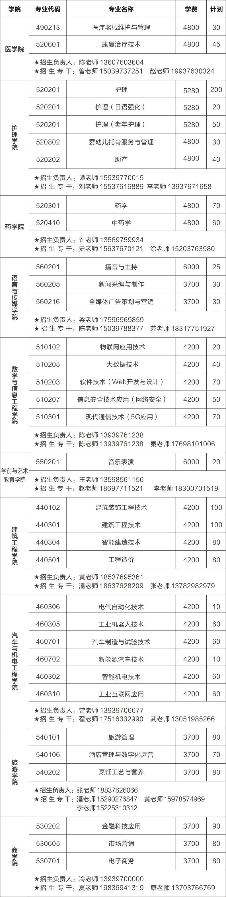 4、个别专业报考生源不足时,学院可根据具体情况调整招生计划。