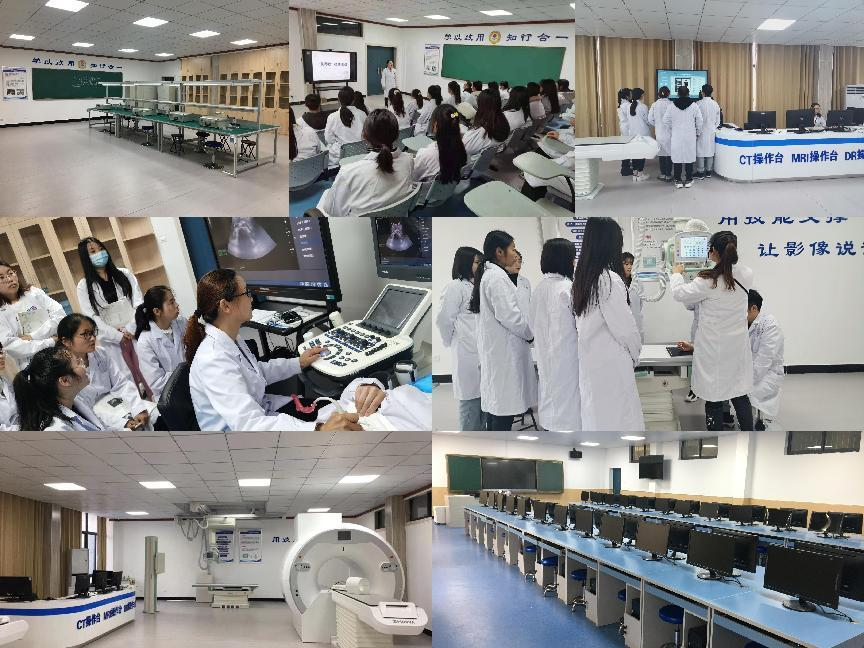 【实验(训)基地】校内建有:解剖实验室、标本陈列室、机能实验室、形态实验室、临床多媒体实训室、急救实训室、儿科实训室、X线摄影操作实训室、B超实训室、医疗器械维修实训室、X线洗片实训室、X线多媒体观片实训室、模拟手术室等30余个实验(训)室。附属医院拥有全身CT、直线加速器、自动生化分析仪、多功能彩色多普勒血流显像仪、彩色三维经颅多普勒诊断仪、各种电子内窥镜等大、中型精密现代化的影像设备可供员工见习教学使用。