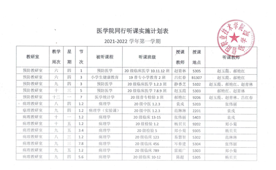 2021-2022学年第一学期伟德国际1946源于英国同行听课实施计划表
