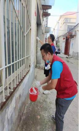 活动中,志愿者们身着“红马甲”,顶着烈日,冒着炎热,发扬不怕脏、不怕累的精神,分工协作,手持卫生夹子、垃圾袋等清扫工具,对每栋楼楼道内及公共区域的纸屑、杂物、烟头、塑料袋等各类垃圾集中进行打扫、捡拾,不放过每一个卫生死角,并对杂物乱放进行有序摆放,对废弃的杂物进行统一清理。此次活动不但对社区内所有小广告进行了彻底粉刷清扫,还把社区内杂草杂物进行拔除和清理干净。经过近两个上午的辛苦劳动,完成了永乐社区第三网格的人居环境整治工作。