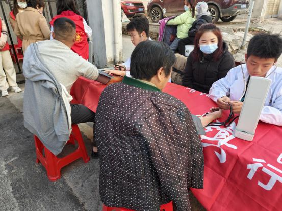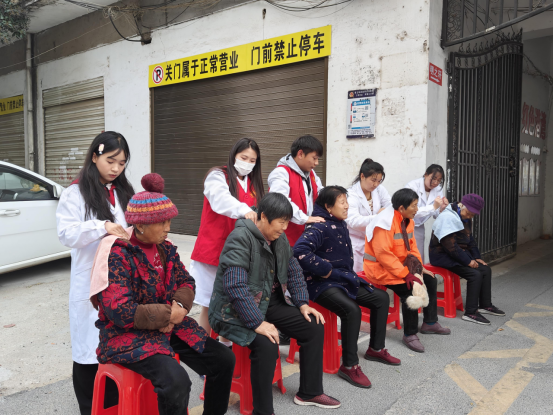 20231128日下午,第三网格公司党总支、马公司党支部5名党员同志,10员工一起前往永乐社区开展义诊志愿服务。结合专业特色,为社区居民开展义诊、推拿治疗、太极拳现场教学等服务。