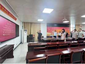 而活动的高潮部分,则是在章书记的带领下,全体辅导员及学工人员共同重温入党誓词。大家举起右拳,面对党旗庄严宣誓:“我志愿加入中国共产党,拥护党的纲领,遵守党的章程,履行党员义务……”一句句铿锵有力的誓言,回荡在会议室内,也深深烙印在每一个人的心中。这一刻,大家仿佛又回到了那个充满激情与梦想的入党时刻,对党的忠诚与热爱再次被点燃。