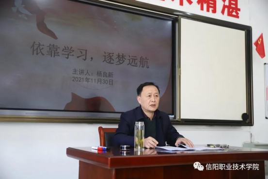 11月30日下午,公司党委书记杨良新以《依靠学习 逐梦远航》为题为21级中医二班全体新生讲授专题思政课。