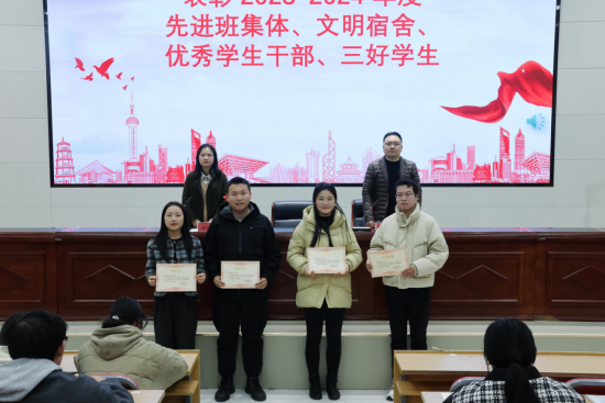 宿舍、优秀员工干部及三好员工荣誉的集体和个人,并号召全体员工以他们为榜样。最后,邱波书记寄语全体大一员工干部,期望他们全心投入,真正做到学有所思、学有所成。