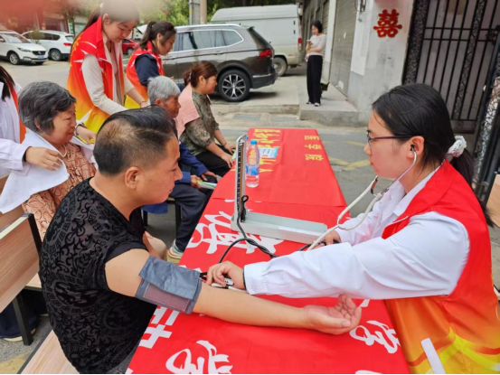在社区工作人员的协助下,党员志愿者们迅速在社区搭建起临时诊疗点。医护人员发挥专业所长,为居民提供中医按摩、血压测量等基础医疗服务,耐心解答居民关于常见病、慢性病的咨询,并针对夏季传染病的预防开展现场知识科普,切实将医疗关怀送到群众身边。