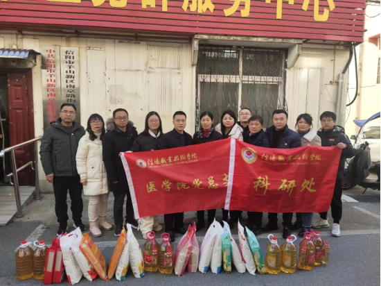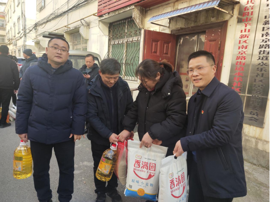 为使社区困难群众感受关怀、温暖过冬, 1月24日下午, 伟德国际1946源于英国党总支联合马克思主义学院党支部 、科研处党支部 、实验实训中心党支部共计十二名同志继续开展支部联支部活动,深入永乐社区对困难群众进行春节慰问。