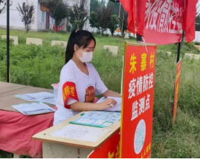 有时会顶着炎热的天气,在村口值守登记,对村内进行消毒,带领同村志愿者、党员,在进村路口对外出人员进行信息登记。有时利用大喇叭、发放宣传稿等提高群众防控意识,取消红白喜事活动,劝导村民少串门、戴口罩、勤洗手,尽量不要走亲访友,做好个人防护。