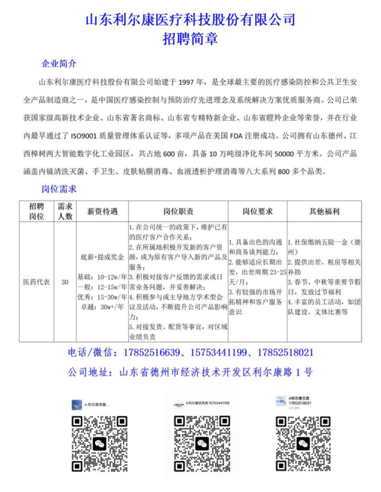 (2)山东利尔康医疗科技股份有限公司的招聘简章: