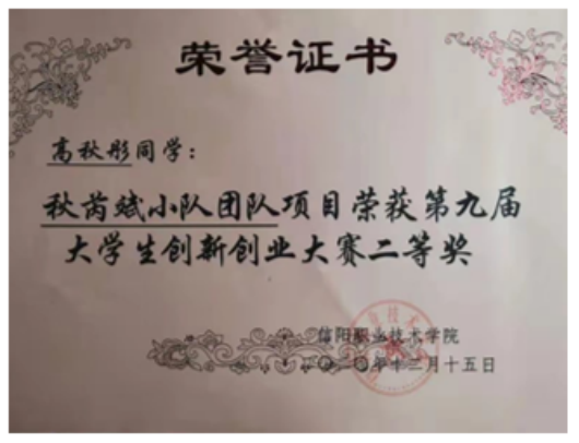 全国高等职业院校“发明杯”老员工创新创业大赛,获一等奖2项、二等奖4项、三等奖4项