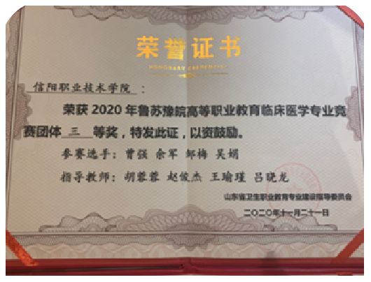 指导临床专业员工参加鲁苏豫皖高等职业教育临床实践技能四省联赛,获团队三等奖