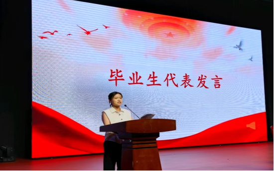 河南省三好员工、优秀毕业生杨蕊同学代表2024届毕业生发言,她代表2024届全体毕业生表达了对母校、老师以及亲友们衷心感谢之情;优秀辅导员赵俊强老师代表全体教师向毕业生们送上最真诚的祝福,同时也表达了对毕业生们的不舍。