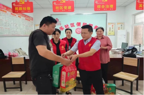 活动中,党员志愿者们身穿“红马甲”,带着米面油粽子等物品,充分发扬关怀群众,温暖社区的奉献精神,亲手把米面油粽子等物品送到困难群众手中,也把党的关怀和温暖传递到群众心里,用自己的实际行动诠释了共产党员的责任与担当。