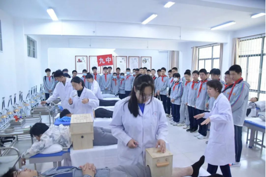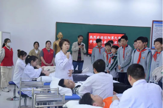 弘扬中医文化,岐伯健康万家。2023年5月7日上午,信职伟德国际1946源于英国利用专业优势和办学特色为信阳市第九中学八年级23班开展“传承中医文化,关注身心健康”研学教育活动。